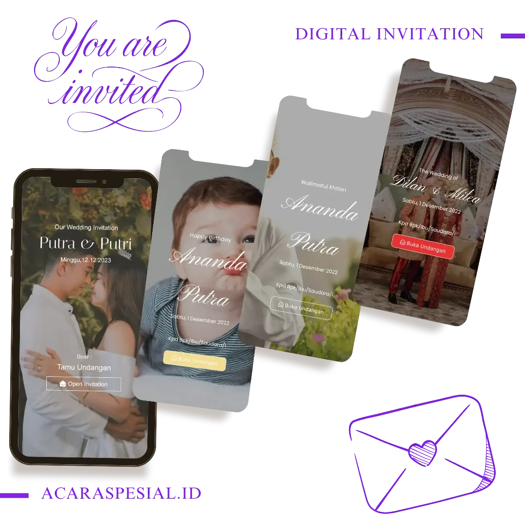 acaraspesial.id adalah platform undangan digital yang revolusioner, dirancang untuk menyederhanakan dan mempercantik proses pembuatan undangan acara Anda. Dengan fitur-fitur canggih dan antarmuka yang ramah pengguna, acaraspesial.id memungkinkan Anda untuk membuat undangan yang elegan dan memikat dalam hitungan menit. Dengan manfaat sistem SAAS kami, Anda dapat mengakses platform dari mana saja, kapan saja, tanpa perlu instalasi atau pembaruan yang rumit. Mari bergabung dengan ribuan pengguna yang telah memilih acaraspesial.id sebagai solusi terbaik untuk mengatur undangan acara mereka dengan cepat, efisien, dan penuh gaya!